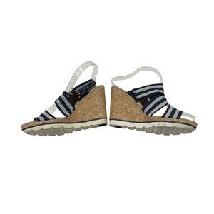 Skechers Womens Size 9 Navy Stripe Cork Platform Wedge Sandals Elastic Straps