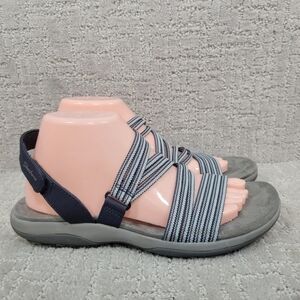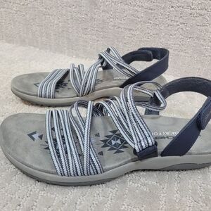 Skechers Women's Size 9 Raggae Slim Navy Blue Silver Memory Foam Slip On Sandals