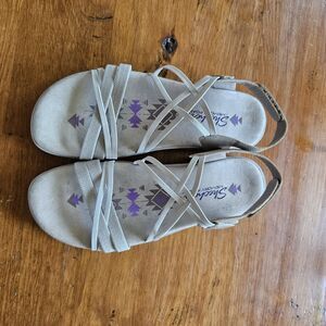 Skechers Women's Size 9 "Reggae Slim Takes Two" Sandals - Beige Memory Foam