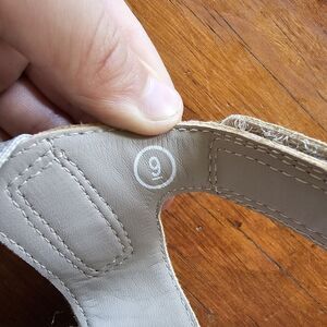 The Skechers Women's Size 9 "Reggae Slim Takes Two" Sandals in Beige Memory Foam are stylish and comfortable sandals perfect for the warmer seasons. With a low heel height and memory foam insole, they provide all-day comfort and support. The strappy design and adjustable hook & loop closure make them easy to wear and a great addition to any woman's shoe collection. The beige color and synthetic upper and outsole material give them a durable and trendy look ideal for summer, fall, or spring wear. Pre-owned