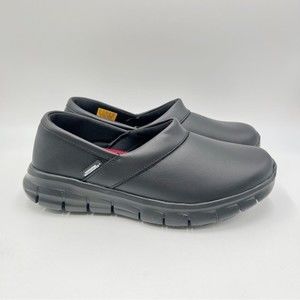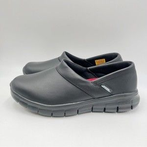 Skechers Womens Size 9.5 76542 Bernal SR Relaxed Fit Black Leather Work Shoes