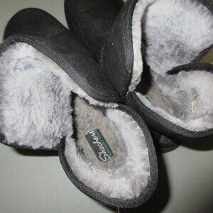 Skechers Womens Slipper Boots Memory Foam Faux Fur Ankle Black Gray inside Sz 8