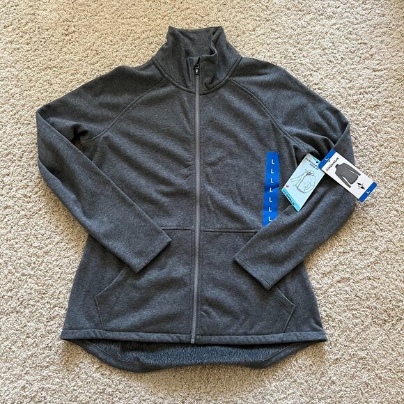 Skechers Womens Snuggle Fleece Mock Zip Jacket, Heather Gray color, Large, New