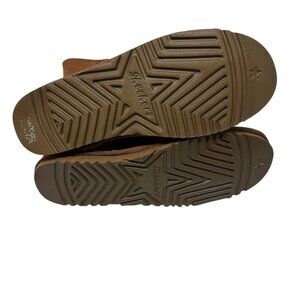 In the chilly embrace of winter, these Skechers boots tell a tale of warmth and style. Crafted from rich suede, they cradle your feet in soft faux fur, while buckle accents add a vintage charm. With each step, they're a reminder of cozy cabins and snow-dusted paths.