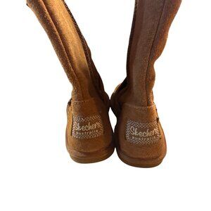 Skechers Womens Suede Mid-Calf Boots Size 7 Faux Fur Lining & Buckle Accents