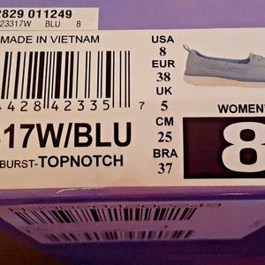 Sketches memory foam. Light blue in color size 8 in women's wide width. Lace up style, Contours to your foot. The box is still in good condition, but the postal carrier was a little rough with it, these have never been worn. I bought them for myself. But changed my mind. Thank you for looking.