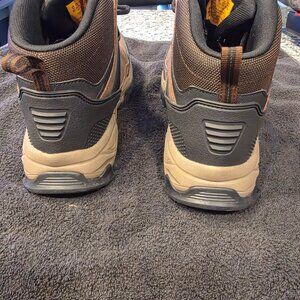 Reliable safety and all-day comfort deliver in Skechers Work™: Arch Fit® Tarver CT. This waterproof boot features a lace-up leather, synthetic and mesh upper with a nonmetallic composite safety toe, removable Arch Fit® insole, and a slip-resistant Goodyear® Rubber Outsole.