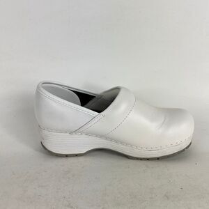 preowned. These Skechers Work Clog Candaba shoes are perfect for women who want slip-resistant footwear for their workplace. The slip-on design makes it easy to wear, while the round toe shape provides a comfortable fit. The shoes come in a white color with the Skechers logo accents. The shoes have a low heel style with a wedge heel, making them perfect for summer, fall, and spring seasons. The outsole material is made of leather, while the upper material is also made of leather. The shoes are handmade with a solid pattern and a low top shoe shaft style. These shoes are perfect for casual activities and are available in US shoe size 8.5, UK shoe size 6.5, and EU shoe size 39.5.