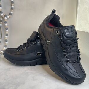 Skechers Work slip resistant Black leather upper Sneakers Size 8.5