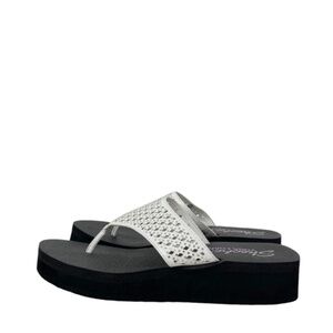 Skechers Yoga Foam White Rhinestone Wedge Platform Flip Flop Sandals Sz 9
