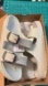 Stylish white slide sandals featuring adjustable buckles. Perfect for casual wear. Arch support. Medium to wide fit.