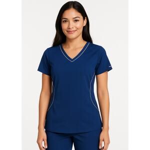 Stay comfortable and stylish through your shift with this Skechers by Barco Women’s Scrub Top in size Medium. Designed with a flattering V-neckline and contrast piping detail, this top features a stretchy, breathable fabric blend that moves with you. Ideal for nurses, medical professionals, and anyone in healthcare.