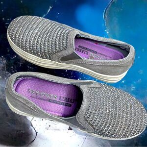 Skechers l Kids l Double Up-Take The Lead Sneaker l Silver Bling l Slip on l 11