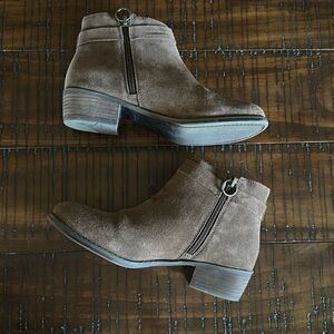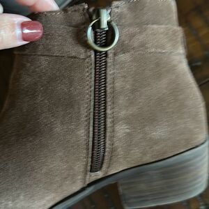 Skechers modern suede western look ankle boots side zip with strap detailing. Sz 7.5 like new condition