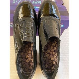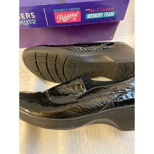Skechers size 9animal print black shiny sn#48661. 1 .5 heel. good used condition.