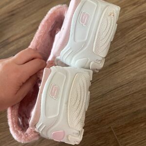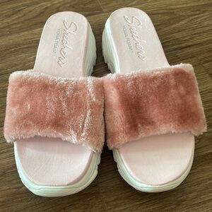 Skechers womens D'lites - Double Date chunky platform fuzzy faux fur pink Sz 11