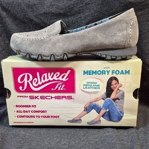 Skechers 8 Grey Suede Leather Bikers Expressway Pull On Flats Sneakers - New