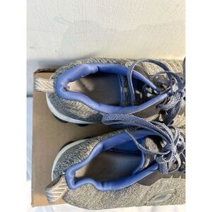 Skechers 9.5 gray blue bubble soles laces. good used condition.