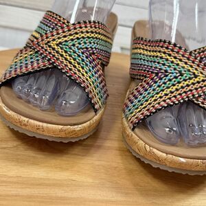 Skechers Beverlee Delighted Rainbow Woven Strap Wedge Sandals Luxe Foam 9