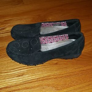 Skechers Black suede Slip-On Flats