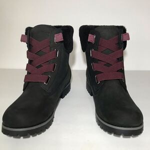 Smooth nubuck leather and plush faux-fur upper, slip-on style, thick stretch laces