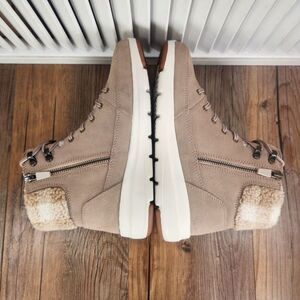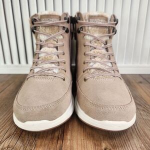 Skechers On-The-Go Glacial Ultra Timber Boots Womens Sz 7 Tan Ankle Suede Plaid