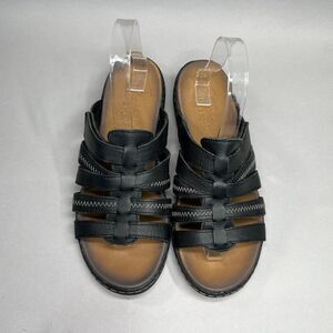 Skechers women's Luxe Foam black leather slide sandals in gently used condition!