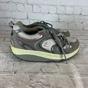 Skechers Shape Ups Women Size 8.5 Toning Walking Gray/Pink Shoes SN 11806