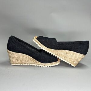 Skechers Wedge Sandals Women's Size 8 Dark Blue Denim Espadrille Open Toe Heels