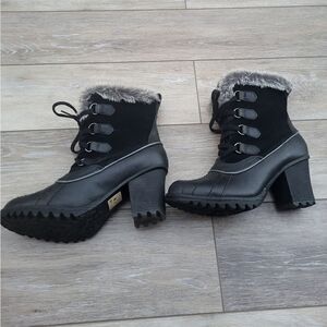 Skechers Winter Chunky Boots Size 8.5 Womens, Black, heeled duck boot