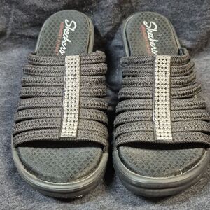 Skechers Women's 7 Black Sparkle Wedge Sandal - New