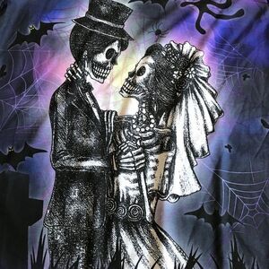 Skeleton Bride & Groom Gothic Halloween Dia de los Muertos Tee Sz L NWT