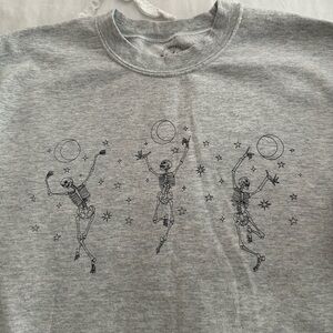 Stay cozy and stylish with this gray graphic sweater. Perfect for casual outings. Would fit a L or XL