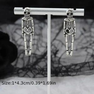 Skeleton Earrings Dangle Skull Silver Halloween Goth Rave Scene Emo Costume Fun