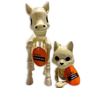 Skeleton Farm Halloween Decor Skeleton Cat & Skeleton Pony Statue. NEW! NWT!