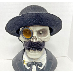Skeleton Gent Bust In Top Hat LED Light Up Eyes Halloween Spooky Night 13"