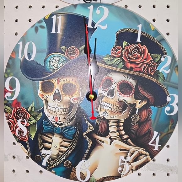 This striking wall clock combines the bold colors of red and blue with a gothic aesthetic, making it a standout piece in any room. The intricate design features a haunting motif that adds a mysterious charm to your decor. Perfect for those who appreciate unique and artistic wall accents.