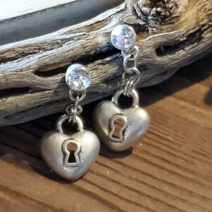 Skeleton Keyhole Dimensional Heart Antique Silver Plated Dangle Earrings