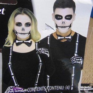 Skeleton Kit 14+ Bow Tie, Suspenders, Gloves, Makeup 5 Pc Halloween Accessory
