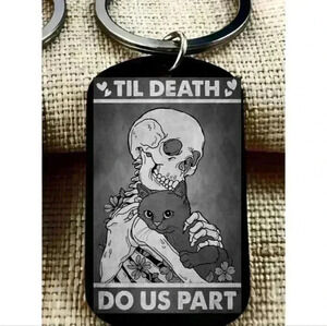 Skeleton Kitty Cat till death do us part hot love Keychain