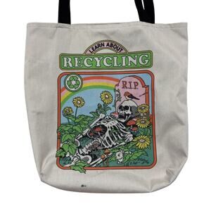 Skeleton “Learn About Recycling” RIP Grave Spooky Tote Bag Whimsygoth Funny
