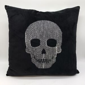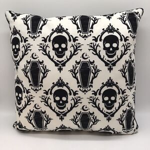 Skeleton Skull & Coffins Square Throw Pillow Plush Black White Gothic Decor 15"