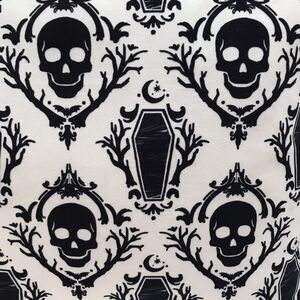 Skeleton Skull & Coffins Whimsigoth Throw Pillow Black White Gothic Decor 15"