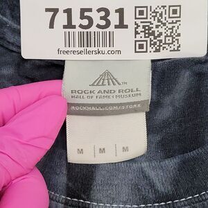 ROCK AND ROLL HALL OF FAME T-SHIRT, SKELETON SKULL GRAPHIC TEE, MEDIUM SIZE ROCK HALL SHIRT, GRAY AND BLACK MUSIC T-SHIRT, ROCK AND ROLL MEMORABILIA
