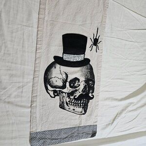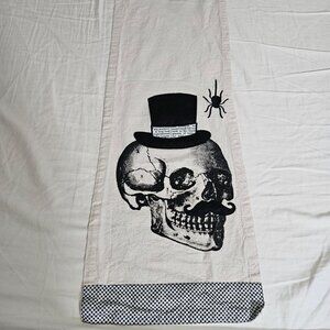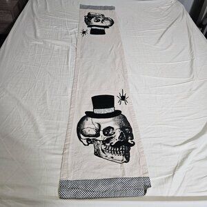 Skeleton Skull Table Runner Beige Black Top Hat Mustache Spider Gothic 67"x13"