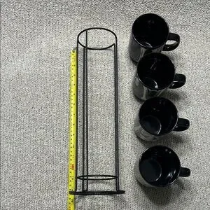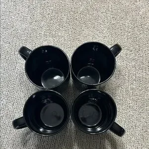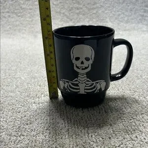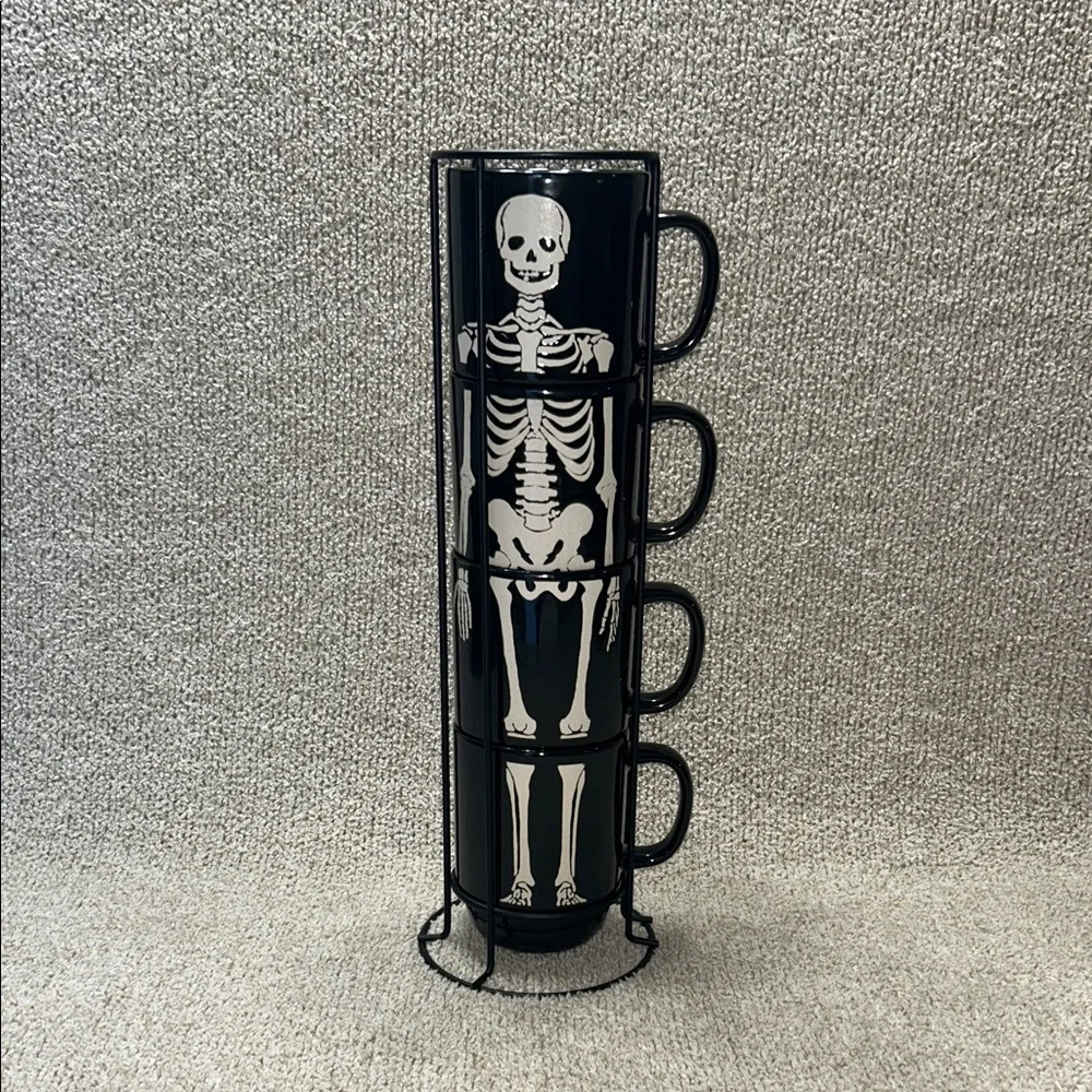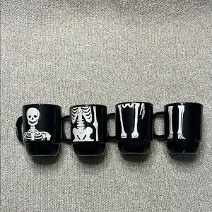 Set of stackable mugs with skeleton design. Perfect for Halloween. Black and white colors. Very good used condition. No cracks or chips. Microwave and dishwasher safe. Condition and measurements shown in photos.