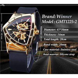 🧿⌚【Triangle Shield Dial Design】: The design of mechanical watches is inspired by the love of shield.The three-dimensional triangle is unique and unforgettable, Fully demonstrate your unrestrained and unique personality, Golden skeleton dia You can see each precision part rotate accurately.