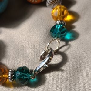 Halloween Charm or any day you choose! Large Turquoise skeleton head with other large colorful bead embellishments.. Lobster claw closure.