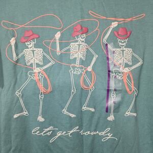 Skeleton cowboys ''Let's get rowdy'' shirt women's XL by Zoe Liv. New without tags ,good condition. Graphic solid, minor amounts of lint.