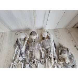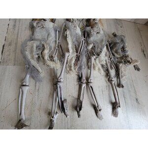 Product has some glue residue, mild scratches and marks, metal rusting, skeleton on far right missing leg, head, feet, multiple pieces, sold as is, but otherwise in good condition, set of four, no box